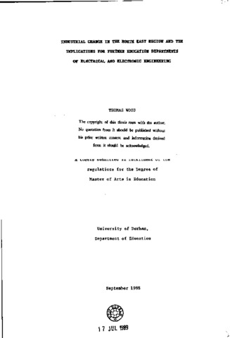 Industrial change in the north east region and the implications for further education departments of electrical and electronic engineering