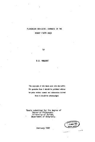 The Moray Firth area is recognized as an area deficient in data relevant to sea-level change. This thesis attempts to provide a preliminary assessment of the restoration of sea-level following the last glaciation, particularly the last 10,000 years. The methodology used is essentially empirical and analytic, based upon stratigraphic description, micropalaeontological investigation and radiocarbon dating of sites in former tidal flat and lagoonal environments. Three sites at the head of the Beauly and Cromarty Firths, at Barnyards (NH 5247), Moniack (NH 5443) and Arcan Mains (NH 4954) provide stratigraphic and environmental evidence for the interpretation of sea-level change during the Flandrian Age. A preliminary chronological scheme of positive and negative tendencies of sea-level movement and a time-altitude graph is constructed using information from biostratigraphic and lithostratigraphic sea- level indicators and nine new radiocarbon dates. An attempt is made to assess the magnitude of error inherent at all stages of the analysis. Correlation is made with other areas of Scotland and Fennoscandia. A comparison is made between the differing methodologies employed in this thesis and other areas of Scotland where sequences of measured and named shorelines have been established. An isostatic curve for the inner Moray Firth is constructed using eustatic calibration of index point altitude. The results are compared to other published isostatic curves for Scotland.