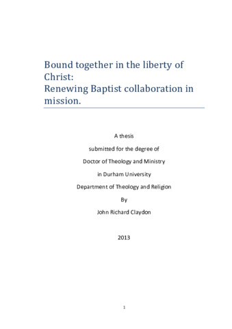 Bound together in the liberty of Christ: Renewing Baptist collaboration in mission.