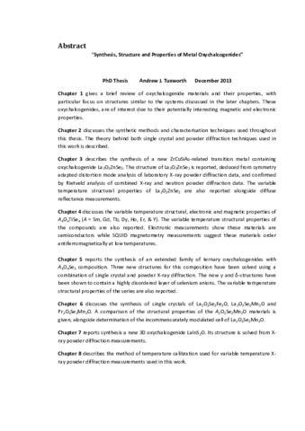 Synthesis, Structure and Properties of Metal Oxychalcogenides
