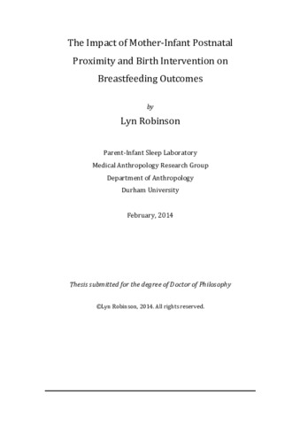ABSTRACT Employing an anthropological perspective, this thesis explores whether alterations in postnatal care can impact on lactation physiology and long-term breastfeeding outcomes. The intervention examined was designed to facilitate mother-infant close proximity on the postnatal ward (using a side-car crib, as opposed to a standard cot), and outcomes were examined for first-time mothers who intended to breastfeed. The intrinsic and extrinsic factors that influence the duration and exclusivity of breastfeeding were also investigated, particularly the role of labour analgesia and delivery interventions. I collected the data presented in this thesis via two separate research studies, both of which investigated the impact of hospital postnatal care on breastfeeding outcomes. Both studies were conducted at the Royal Victoria Infirmary, Newcastle upon Tyne, UK. First, I conducted a non-randomised pilot study to investigate the effect of mother-infant postnatal proximity on maternal lactation physiology (maternal prolactin levels) and breastfeeding outcomes. The pilot study was considered an important stage prior to the implementation of a larger trial, and aimed to assess: the feasibility of novel data collection methods (dried blood spot (DBS) sampling), recruitment strategies, the management of the research and the required sample size. The pilot study included 57 women after receiving either a side-car crib or a standard cot on the postnatal ward, following an unassisted delivery. Blood spot analysis aimed to assess differences in prolactin increase. Results from the non-randomised pilot study generated useful information regarding the recruitment of participants and collection of biological samples via novel methods (DBS sampling), despite experiencing shortcomings with the analysis of the DBS samples. Recruitment rates were higher among women recruited from antenatal breastfeeding workshops, as opposed to women recruited following delivery on the postnatal ward. Descriptive statistics suggested that participants recruited at antenatal breastfeeding workshops reported high affluence than participants recruited on the postnatal ward. Equal numbers of participants in the two groups provided the DBS samples requested and data generated supported the use of DBS sampling as an alternative to venepuncture for research. The pilot study highlighted issues regarding the provisioning of the intervention (fidelity of implementation) and constraints to recruitment and data collection imposed by being a lone researcher. Second, I worked as the nominated Ph.D researcher on a large randomised controlled trial, referred to as the North-East Cot Trial (NECOT), where I contributed fully to the recruitment, data collection and management of the trial. I recruited participants at antenatal ultrasound clinics at 20 weeks gestation, midwifery staff provided the allocated cot type (side-car crib or standard cot) on the postnatal ward and data on breastfeeding duration were collected via a weekly telephone follow-up from birth until six months postpartum. I performed subgroup analysis on data from 366 first-time mother-infant dyads and employed three methods of analysis (intention-to-treat, per-protocol and as-treated) to assess the intervention on breastfeeding outcomes following differing birth experiences (vaginal unmedicated (VU), vaginal medicated (VM), instrumental medicated (IM) and caesarean section (CS)) and prenatal breastfeeding attitudes. The intrinsic and extrinsic factors that influence the duration and exclusivity of breastfeeding among these first-time mothers were also investigated. Results from the analyses indicated that birth interventions (VM, IM, CS) increased the risk of early breastfeeding cessation (both exclusive and any); postnatal ward cot type was not associated with breastfeeding duration among these groups. Following a VU delivery, facilitating mother-infant close proximity significantly improved the duration and exclusivity of breastfeeding among women whose commitment to breastfeeding was more uncertain. However, analysis also indicated that some women experienced inexplicably better breastfeeding outcomes following birth intervention (IM delivery). Maternal socio-demographic variables and prenatal breastfeeding attitudes increased the risk of early breastfeeding cessation at different time-points from birth to 26 weeks postpartum. Results from this analysis can be used to generate hypotheses for future research. This research highlighted that: (1) mother-infant dyads are more receptive to the benefits of postnatal proximity for breastfeeding following a VU delivery and (2) birth intervention and prenatal breastfeeding attitudes impact on breastfeeding longevity. Essentially, women rework breastfeeding behaviours in line with changing internal and external factors throughout the postpartum period, especially during times of vulnerability.
