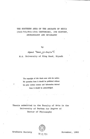The southern area of the amirate of Mecca (3-7/9-13 centuries), its history, archaeology and epigraphy.