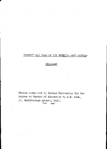 Poverty and some of its effects upon school children.