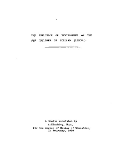The influence of environment on the fen children of Holland (Lincs.).