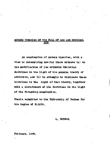 Modern theories of the fall of man and original sin