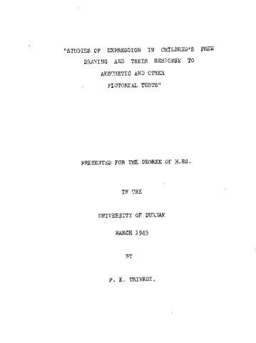 The research aims at studying children's expression. It was, at the outset, restricted to the analytical study of free drawing; but subsequently its scope was enlarged through the following tests which the writer devised for the present study: (1) The Environment Preference Test. (2) The Projection Test. (3) The Visual Aesthetic Test. 1769 children aged 5-17 were asked to draw and paint pictures on the subjects which interested them most. This approach yielded the following results: l. The child records the images and impressions which loom large in a total situation in which he is the chief actor. 2. The environment a child depicts in his drawing represents his own environment (actual or idealised) which serves for an introduction to his field of activity. This indicates the frontiers of his world which he has been exploring and which is expressive of the dynamic aspect of his life space at his age. 3. The correlation between intelligence and artistic ability was found to be negligible (.02).The results of the pictorial tests supplemented these results and showed that children usually prefer pictures representing aspects of social activity, wholeness of the theme or familiar environment. Sex differences were noticeable among adolescents, girls excelling boys in visual aesthetic appreciation. Sex differences were not noticeable in children under the age of nine nor in adult art students. A small but positive correlation of .11 was found between visual aesthetic intelligence and general intelligence. Visual aesthetic intelligence and artistic ability showed a correlation of .10. The educational and psychological implications of the results seem to be significant in that these tests reveal the centres of interest for the child in terms of environment and activity which may be useful in formulating principles of curriculum-making. They also reveal the need for guiding those children who lack social stimulus.