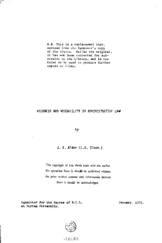 It is proposed to investigate whether the distinction between a void and a voidable act, is a necessary incident of the law governing judicial review of administrative decisions, whether the consequences of the distinction are utilised by the Courts, and whether the distinction has a useful role to play in administrative law. The theoretical and historical basis of the distinction is first examined with the conclusion that void and voidable decisions are a necessary result of a system of review based upon the ultra vires doctrine. The notion of jurisdiction is examined to ascertain whether there is any general formula with which to distinguish between decisions producing nullity and those resulting in a voidable decision. It is concluded that such a formula is undesirable in principle and can not in the light of existing authority be produced. The various reviewable defects are then analysed to determine whether the Courts regard them as void or voidable. There is considerable inconsistency in the cases, but it is reasonably clear that some procedural defects, breach of natural justice, and serious abuse of discretion are jurisdictional and produce nullity. As a result of this an investigation of the various consequences of the distinction in connection with remedies, leous standi, estoppel, and privative clauses leads to the conclusion that the Courts do not consistently apply the logical consequences of nullity, and indeed that to do so would produce inconvienience. However, in the field of actions in tort and privative clauses the distinction is consistently relied upon. Finally voidable decisions are examined to determine whether a doctrine of retroactivity operates with the conclusion that it does not. In conclusion the technical difficulties arising from the existing system of review based upon the notion of jurisdiction are criticised, and a broader basis for judicial review is proposed which would involve the ultra vires doctrine and therefore the void voidable distinction having only a subordinate role.