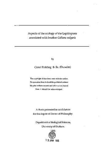 Aspects of the ecology of the Lepidoptera associated with heather Calluna vulgaris.