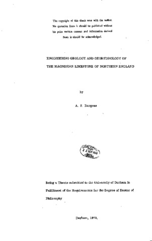 Engineering geology and geohydrology of the magnesian limestone of Northern England