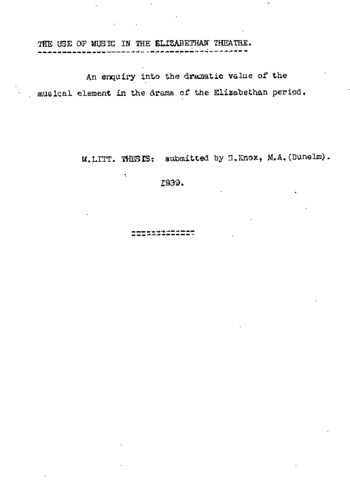The use of music in the Elizabethan theatre: an enquiry into the dramatic value of the musical element in the drama of the Elizabethan period.