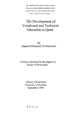 The development of vocational and technical education in Qatar.
