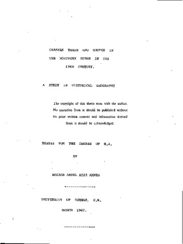 Caravan trade and routes in the northern Sudan in the 19th century: a study in historical geography