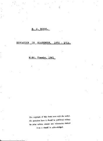 Education in Blackburn, 1870 - 1914.