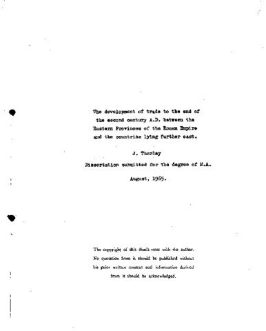 The development of trade to the end of the second century A.D. between the eastern Provinces of the Roman Empire and the countries lying further east
