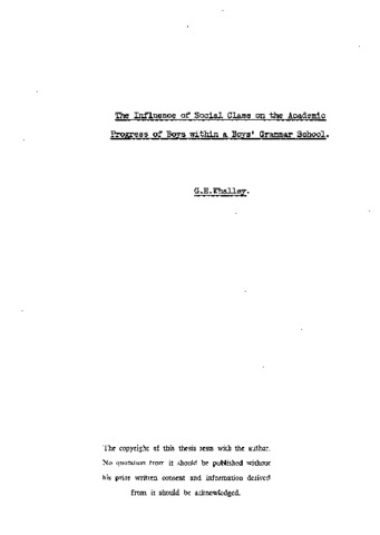 The influence of social class on the academic progress of boys within a boys' grammar school