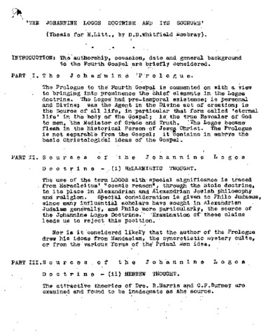 The Johannine logos doctrine and its sources.