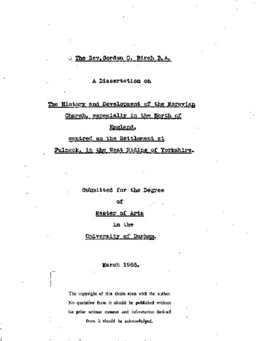 The history and development of the Moravian church, especially in the North of England, centred on the settlement at Fulneck, in the West Riding of Yorkshire.