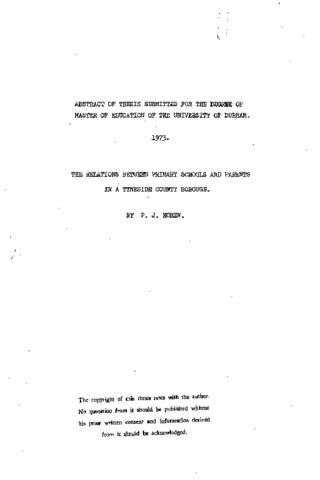 The relationship between primary schools and parents in a Tyneside County Borough.