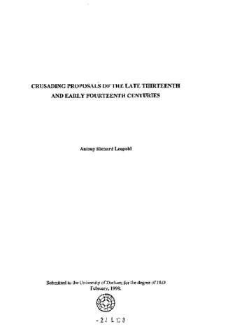 Crusading proposals of the late thirteenth and early fourteenth centuries.