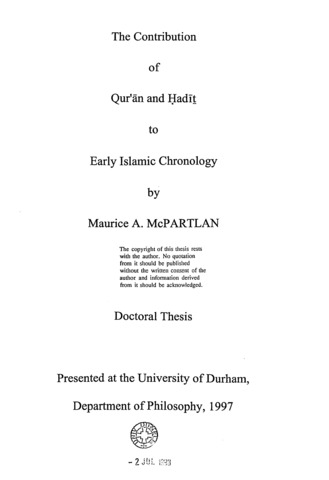 The contribution of Qur'an and Hadit early Islamic chronology.
