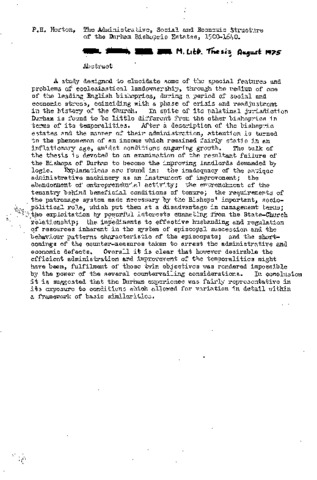 A study designed to elucidate some of the special features and problems of ecclesiastical land ownership, through the medium of one of the leading English bishoprics, during a period of social and economic stress, coinciding with a phase of crisis and readjustment in the history of the Church. In spite of its palatinal jurisdiction Durham is found to be little different from the other bishoprics in terms of its temporalities. After a description of the bishopric estates and the manner of their administration, attention is turned to the phenomenon of an income which remained fairly static in an inflationary age, amidst conditions auguring growth. The bulk of the thesis is devoted to an examination of the resultant failure of the Bishops of Durham to become the improving landlords demanded by logic. Explanations are found in: the inadequacy of the antique administrative machinery as an instrument of improvement; the abandonment of entrepreneurial activity; the entrenchment of the tenantry behind beneficial conditions of tenure; the requirements of the patronage system made necessary by the Bishops' important, socio-political role, which put them at a disadvantage in management terms; the exploitation by powerful interests emanating from the State-Church relationship; the impediments to effective husbanding and regulation of resources inherent in the system of episcopal succession and the behaviour patterns characteristic of the episcopate; and the short comings of the counter-measures taken to arrest the administrative and economic defects. Overall it is clear that however desirable the efficient administration and improvement of the temporalities might have been, fulfilment of these twin objectives was rendered impossible by the power of the several countervailing considerations. In conclusion it is suggested that the Durham experience was fairly representative in its exposure to conditions which allowed for variation in detail within a framework of basic similarities.