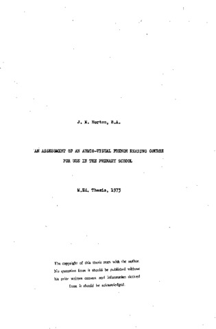 Prior to the work carried out in 1968 by the author of this thesis, a French reading course for use in the primary school had been designed in the Department of Education at Durham University and given a small-scale trial. This thesis describes the work carried out in assessing the use of the course in a larger number of primary classes under as near as possible normal conditions. Part I of the thesis describes the background to the experiment: the rapid growth of primary French teaching in the sixties, the basic need for oral competence, and the problems expected in introducing reading. In Part II of the thesis the designing and initial trial of the reading course is described. After it had been established that the introduction of French reading did cause problems, an audio-visual reading course was designed which used a partly look-and-say, partly phonetic method. At the same time tests were designed which were to indicate how successful the course was. The course was taught to two primary classes in 1967 by a research student and the results, compared to a grammar school control group, were promising. Part III of the thesis describes the preparations made for a larger-scale assessment of the material using firstly a group of eight primary school classes taught by their usual teachers, and then in the following year a smaller group of five similar classes. The make-up of the sample and the running of the assessment programme are described. In Part IV the results of the experiment are given, and reasons suggested for the lower level of success achieved. The results of the five-class group are examined separately. Part IV concludes with a consideration of some of the linguistic problems brought to light.