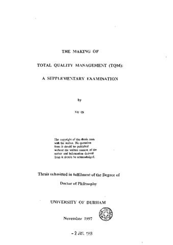 The making of total quality management (TQM) : a supplementary examination.