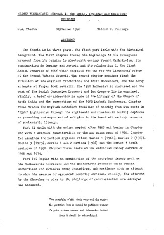 Recent Eucharistic renewal in the Roman, Anglican and Methodist churches