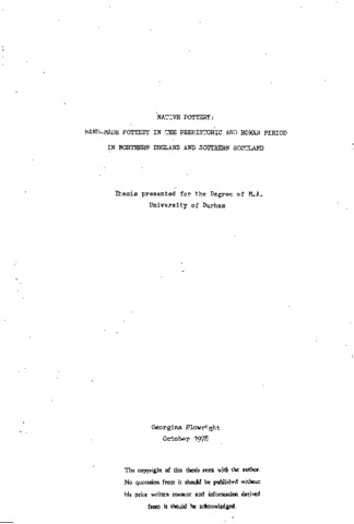 Native Pottery: hand-made pottery in the prehistoric and Roman period in northern England and southern Scotland.