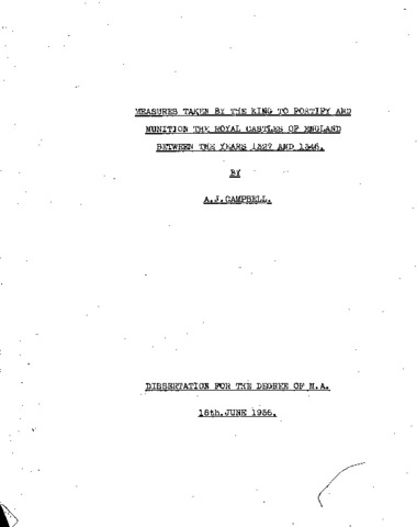 Measures taken by the King to fortify and munition the royal castles of England between the years 1327 and 1346
