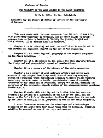 (This work deals with the Arab conquest from 622 A.D. to 656 A.D, with particular reference to Mobility, and is based mainly on Arabic sources such as Tabari, Baladhuri, Waqidi, Ibn Hisham, Ya'qubi and Abd al-Hakam. It is divided into six chapters. Chapter I is introductory and outlines conditions in Arabia and in the Persian and Byzantine Empires on the eve of the conquests. Chapter II is a brief regional geography of the regions conquered in the first invasions, Chapter III is a discussion on the camel: its main characteristics; the historical and geographical spread of camel-culture. Chapter IV is a summary of the history of the early conquests. Chapter V is a survey of Arab military affairs and covers many aspects of this subject including: conditions of service; weapons; numerical strengths; troop formations; command; tactics; static warfare; deception; the Arab woman in battle; provisioning; care of wounded; treatment of the slain and of prisoners; booty; the origin, planning and direction of the conquests; administration of the conquered lands; pensions; Muslim morale. Chapter VI deals with Mobility and is divided into two sections. Section I is devoted to a discussion of the use of the camel and the horse in the daily life of the Arabs. Section II considers the use made by the Arabs of mobility as an instrument of war in the early conquests. A short Conclusion summarises the advantages and disadvantages possessed by the Arabs when they began their wars of conquest. Superior mobility is assessed as one of the important assets.
