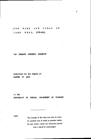 The work and ideas of John west, 1778-1845