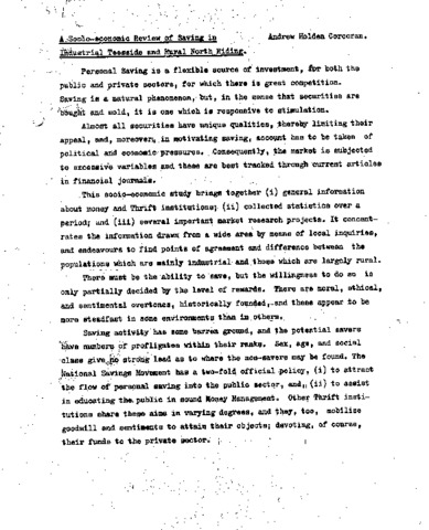 Socio-economic review of saving in industrial Teesside and rural North Riding