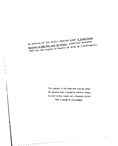 An edition of the middle English poem: A dispitison bitwene a God Man and be deuel