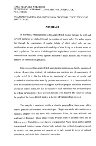 The British church and Anglo-Saxon expansion : the evidence of Saints cults.