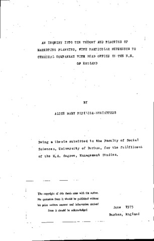 An enquiry into the theory and practice of marketing planning, with practical reference to chemical companies with head office in the N.E. of England