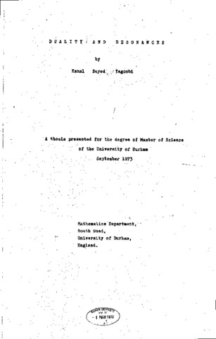 The main idea of the following pages is to review the A (_1) partical. They set out to explain the problem, to show the attempts done in this field and to compare the different interpretations of different authors. In order to do this we use resonances and duality as our tools of investigation. In chapter one, we give a general discussion on resonances. We show what we mean by a resonance, what the characteristics of resonances may be, and the ways by which resonances are determined. Some mis-leading terminologies and interpretations which occur in this area are also discussed. In the second part, an explanation of SU(2), SU(3) and quark models has been done. There, the concept of exotic states and their different types are shown. In chapter two, a sketch of the A (_1) particale, since the time it was discovered till the recent time when different types of models have been given in order to resolve or, at least, to clarify and explain the mysterie of the πρ enhancement is drawn. Also the A (_1’s) future and a simple test, which invokes data to remove the A (_1) ambiguity are given. In chaprte three, the idea of duality has been discussed. How duality has altered the concept of resonances, what the conflict with the earlier interference model is, the Veneziano model and finaly the effect of duality on the A (_1) problem are discussed. In chapter four, we extend the discussion of chapter three. The excellent discussion by E.L. Berger (1971) is given here. His suggested model may make the situation of the A (_1) clear. His discussion encourages people to believe that the A (_1) might be a kinematical effect. Finally, we conclude by giving a brief review of the present status of the A (_1) enhancement.
