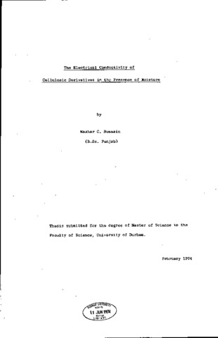 The work presented in this thesis consists of a review of previous work on cellulosic materials and related polymers, and the results of an experimental investigation into the electrical conductivity of cellulosic derivatives (cellulose acetate, cellulose acetate butyrate) in the presence of moisture. The experimental work for the present investigation has been carried out in three parts. The first part concerns the preparation of thin films of cellulose acetate and cellulose acetate butyrate from the raw material using a casting technique. The second and major part of the experimental work concerns electrical measurements, including the measurement of dielectric constant dielectric loss and volume conductance under different conditions of humidity and contamination, etc. These follow the experiments made by Barker and Thomas on the effect of moisture and high electric fields on conductivity in alkali-halide doped cellulose acetate. The third and the final part of the experimental work deals with the sorption measurements, i.e. the sorption isotherms for the materials and their correlation with the electrical measurements. This part is incomplete. The results obtained are in agreement with the results of Barker and Thomas and the two materials have given similar results. However the work has been extended beyond the original work of Barker and Thomas and significant disagreement has been found with their work. In particular results obtained at different humidity do not support the theory proposed by Barker and Thomas. The surface conductance of the specimens was measured and was found to be negligible at all humidities. It is concluded that there is no surface conduction on these materials.