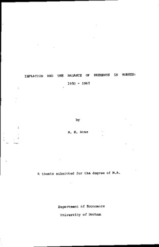 Infaltion and the balance of payments in Turkey: 1950-1965