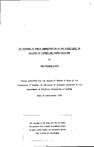 |The teaching of public administration at sub degree level in colleges of further and higher education
