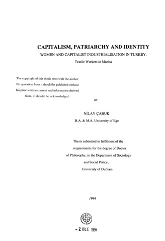 Capitalism, patriarchy and identity women and capitalist industrialisation in Turkey : textile workers in Manisa.