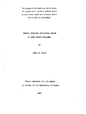 Family, marriage and social change in some Libyan villages.